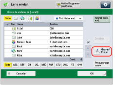 Se quiser criar um endereço de grupo, tem de gravar previamente os destinos (como os endereços de correio eletrónico e de servidor de ficheiros).