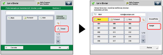 → [Ler e Enviar] → [Tecla marc. memórias telefónicas diretas].