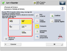→ [Ler e Enviar] → especifique o destino → carregue na tecla de formato de ficheiro.