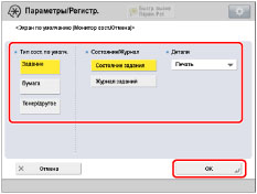 При выборе варианта [Задание] в пункте <Тип сост. по умолч.> можно задать <Состояние/Журнал> и <Детали>.