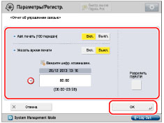 Если отображается сообщение <Проверьте принтер. Обратитесь в бюро обслуживания.>, указывающее на недоступность функции Печать, аппарат автоматически печатает Отчет об управлении после того, как проблема будет устранена. Последние 100 результатов связи будут отражены в отчете.