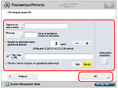 Если эти параметры были ранее заданы для отдельных почтовых ящиков, можно указать параметры [Время до автоматич. удаления документа] и [Печать после сохранения из драйвера принтера] для раздела [Парам. для всех почт. ящиков] в меню [Параметры функции] (Параметры/Регистрация) независимо от настроек PIN-кода для каждого почтового ящика. Однако в случае обновления этих параметров раздельно для каждого почтового ящика после использования настроек [Парам. для всех почт. ящиков] обновленные параметры имеют приоритет над параметрами, заданными с помощью настроек [Парам. для всех почт. ящиков]. (См. "Задание параметров для всех почтовых ящиков".)