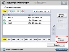 Если в раскрывающемся списке Адресная книга выбрать вариант [Все списки адр.], будут отображаться также адресаты, зарегистрированные под кнопками однокнопочного набора. Однако удаление адресатов, зарегистрированных в кнопках однокнопочного набора, невозможно. Указания по удалению кнопок однокнопочного набора см. в разделе