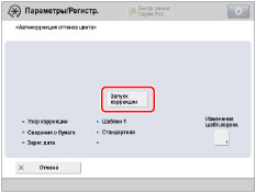 Для того чтобы скорректировать цвет с помощью зарегистрированного шаблона коррекции, нажмите клавишу [Изменение шабл.коррек.] → выберите зарегистрированный шаблон коррекции → нажмите клавишу [OK]. Дополнительные сведения о шаблоне коррекции см. в разделе "Регистрация шаблона коррекции".
