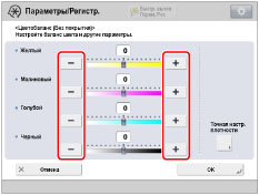 Нажмите клавиши [Настр./Технич. обслуживание] → [Настр. качества изображения] → [Цветобаланс].