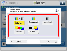 Если задан режим Авто (Цвет./Ч-б), черно-белые копии выводятся с той же скоростью, что и цветные копии.