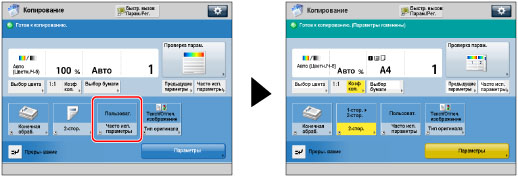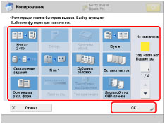 Нажмите клавишу [Зад. часто исп.парам.] → выберите назначенную кнопку часто используемых параметров → нажмите клавишу [OK].