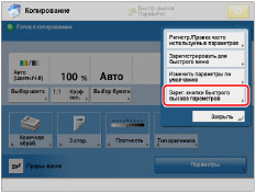 Для использования этой настройки необходимо сначала зарегистрировать Часто используемые параметры. (См. "Сохранение, вызов и удаление часто используемых параметров (Часто используемые параметры)".)