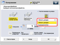 Вариант [Указать номер пакета копий] можно задать только в том случае, если выбрать [Область укладки] в пункте <Участок вывода из укладч.>.