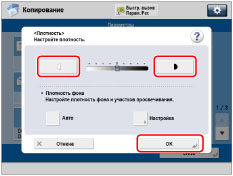 Если плотность изменена в меню [Параметры], настройка плотности во время копирования может не оказывать влияния на распечатки.