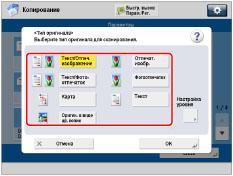 Если оригинал представляет собой OHP-пленку/прозрачную/просвечивающую пленку, выберите тип оригинала → настройте экспонирование на наиболее подходящий уровень для данного оригинала.