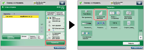 Нажмите клавиши [Параметры] → [2-стор. оригинал].