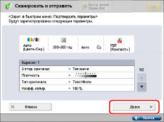Например, если требуется сканировать двусторонние оригиналы и отправлять клиенту документ типа Компактный PDF по электронной почте: