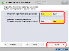 Если выбрано значение [Вкл.], при вызове зарегистрированной кнопки открывается диалоговое окно запроса подтверждения отображаемых параметров. Дополнительные сведения о диалоговом окне подтверждения для параметров см. в разделе