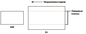 Если после копирования или печати на 100 и более листах бумаги с меньшей шириной начать использовать бумагу с большей шириной (например, бумагу формата A3 после бумаги формата A4R), на обоих краях в направлении подачи могут появляться глянцевые полосы. Кроме того, при использовании плотной бумаги или бумаги с покрытием в зонах высокой плотности могут появляться участки неравномерно распределенного глянца. Выраженность таких полос и пятен неравномерного глянца можно ослабить, выполнив обновление фиксирующего валика и чистку его поверхности.