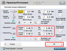 задайте коэффициент увеличения/уменьшения (%) в пунктах <Масштаб (f)> и <Масштаб (d)> на экране <Настройка позиции изображения> → нажмите клавишу [OK].
