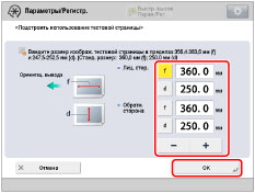 Введите длину тестовой страницы как для лицевой, так и для обратной стороны → нажмите клавишу [OK].