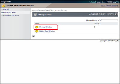 Нажмите кнопки [Access Received/Stored Files] → [Memory RX Inbox] → [Memory RX Inbox].