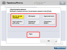 Если не производится одновременное восстановление данных для параметров [Знач., зад. в Пар./Рег.] и [Адресная книга], параметры в пункте [Пар. пер. с URL] разделов [Задать яч. факса/И-факса] и [Параметры почт. ящика] могут быть стерты.