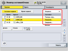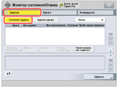 Отмененное задание отображается на экране Журнал с пометкой <NG> (Неудачно).
