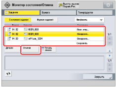 Невозможно выбрать несколько заданий и отменить их все сразу. Выбирайте и отменяйте по одному заданию.