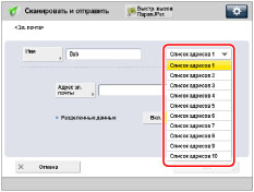 Нажмите разворачивающийся список → выберите один из списков адресов 1–10.