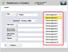 Если для параметра [Вкл./Выкл. языка/клавиатуры] задано значение "Вкл.", то имя хоста и путь к папке адресата-файлового сервера могут отображаться некорректно, и переход к ним может быть невыполним. (См. "Включение переключателя языка/клавиатуры".)