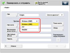 Более подробные сведения об имеющихся протоколах см. в разделе "Указание файлового сервера с помощью клавиатуры".