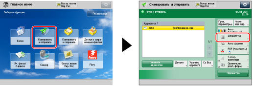 → [Сканировать и отправить] → укажите адресата → нажмите кнопку разрешения.