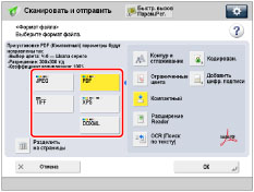 → [Сканировать и отправить] → укажите адресата → нажмите кнопку формата файла.