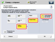 Если выбран режим [OCR (поиск по тексту)], отправка возможна только с коэффициентом масштабирования [1:1 (100%)] или [Авто].