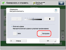 Если выполняется настройка плотности фона с помощью клавиши [Настройка] для параметра <Плотность фона>, настройка [Авто] отменяется. Аналогично, при нажатии клавиши [Авто] во время ручной настройки в пункте [Настройка] выполненные настройки отменяются. Аппарат автоматически настраивает плотность в соответствии с фоном.