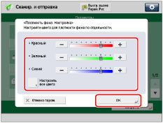 Для независимой настройки плотности красного, зеленого и синего цветов нажмите клавишу [Настроить кажд. цвет]. Клавишей [-] или [+] настройте плотность каждого цвета → нажмите клавишу [OK].