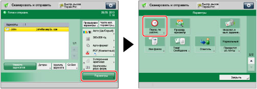 Можно проверить состояние, отменить или изменить адресатов документов, заданных для режима Передача по расписанию. (См. раздел "Проверка состояния задания", " Отмена задания" или "Повторная отправка заданий/Замена адресата".)