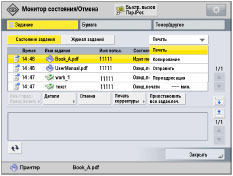 Нажмите клавиши [Задание] → [Состояние задания] или [Журнал заданий] → выберите тип задания в раскрывающемся списке.