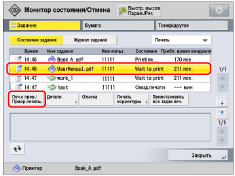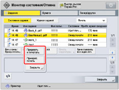 Выполнение текущего задания приостанавливается, и выполняется печать выбранного задания.