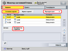 Если нажать клавиши [Задание] → [Журнал заданий] → выбрать пункт [Прием] в раскрывающемся списке, также отображается [Проверить ПР. И-факса].