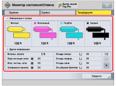 Можно проверять состояние расходных материалов, например сведения об оставшемся количестве тонера и скрепок. С ее помощью можно также проверить состояние резервного копирования сохраненных данных.