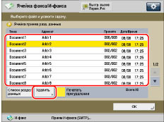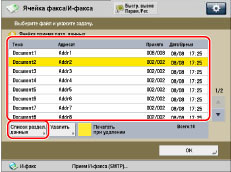 Разделенные данные удаляются во время их приема аппаратом. Можно также задать в аппарате печать удаляемого файла.