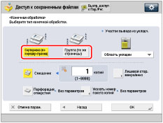 Если режим [Конечная обработка] не задан, используются те же параметры, что и при установленном режиме [Группа (те же страницы)].