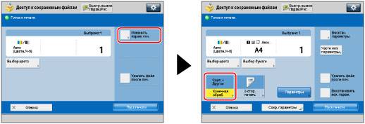 Режимы конечной обработки нельзя задавать при выборе пользовательского формата, OHP-пленок/прозрачной пленки, веленевой бумаги или этикеток.