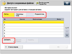 Если требуется задать как режим [Вставка листов], так и режим [Добавить обложку], выберите одинаковый формат бумаги.