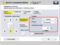 Если [Нумерация страниц] используется в сочетании с режимом [Добавить обложку], [Вставка листов] или [Разделитель заданий], номера на вставных листах не печатаются.