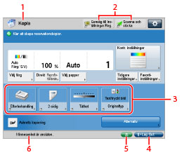 För information om de skärmar som du kan välja att visa när maskinen har startats, se "Standardskärm efter start/korrigering"