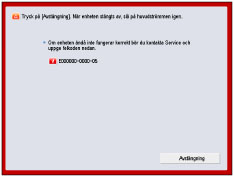 För anvisningar om hur man startar om maskinen (stänger av och sedan slår på huvudströmbrytaren), se "Knapp för huvudström och energisparläge"