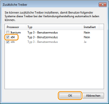 ![]() Wählen Sie die zusätzlichen Treiber gemäß dem Betriebssystem des Druckservers wie folgt aus.