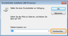 ![]() Geben Sie den Ordner, in dem die zusätzlichen Druckertreiber gespeichert sind, wie folgt an.