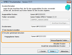 Geben Sie den Namen des freigegebenen Druckers ein. [Hinzuzufügende Treiber]