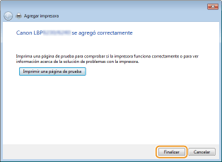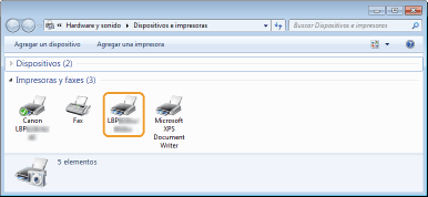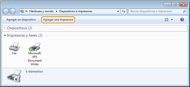 La instalación para utilizar los WSD se habrá completado cuando en la carpeta de impresoras aparezca un icono de la impresora que se ha agregado.