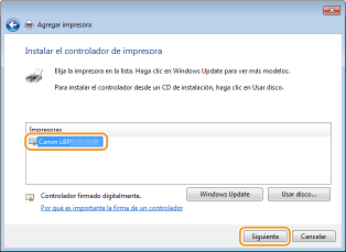 Especifique la carpeta donde se encuentra el controlador de impresora de la manera siguiente.